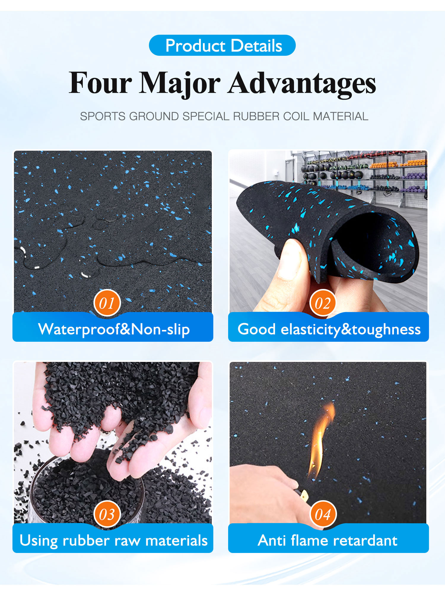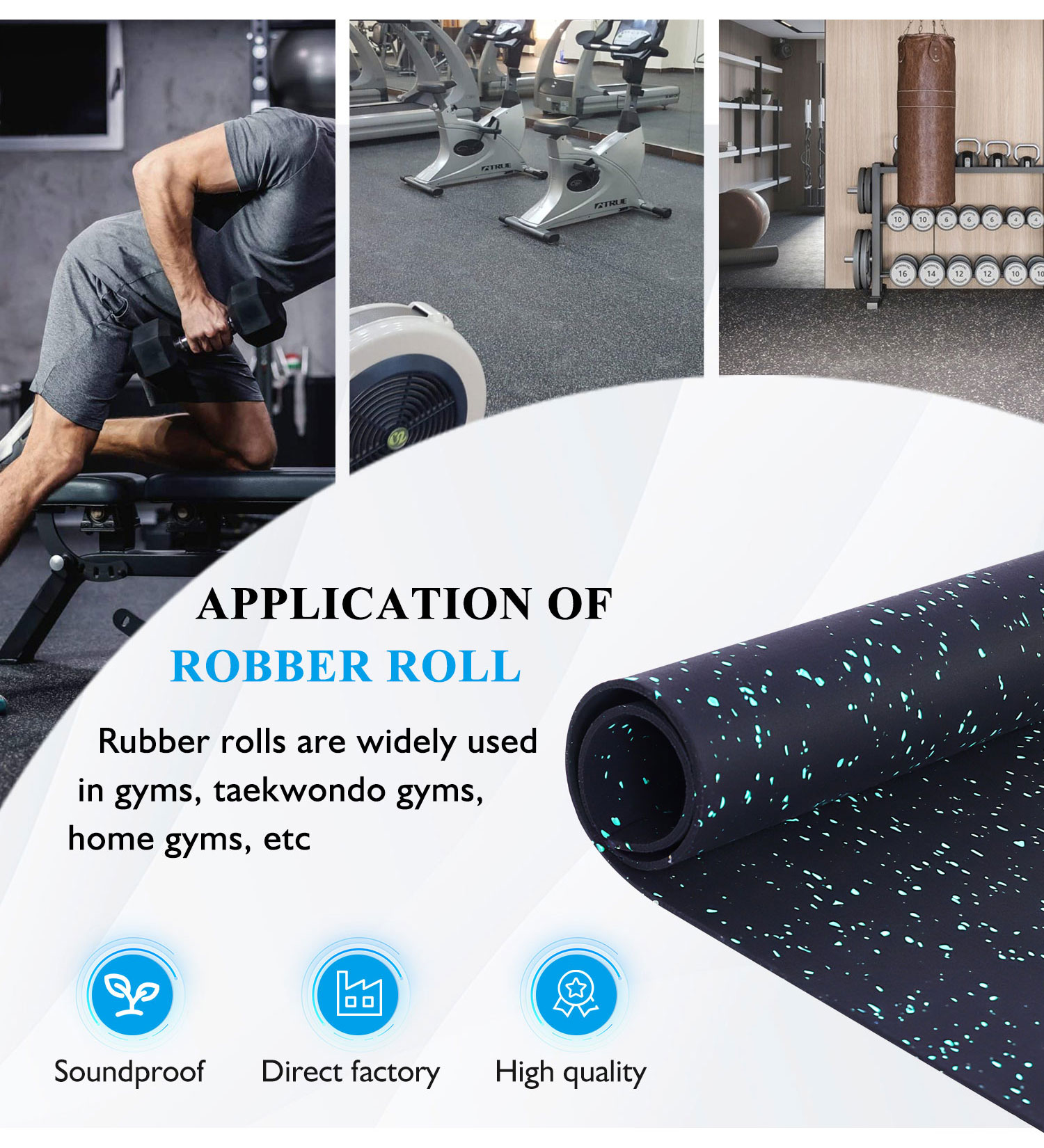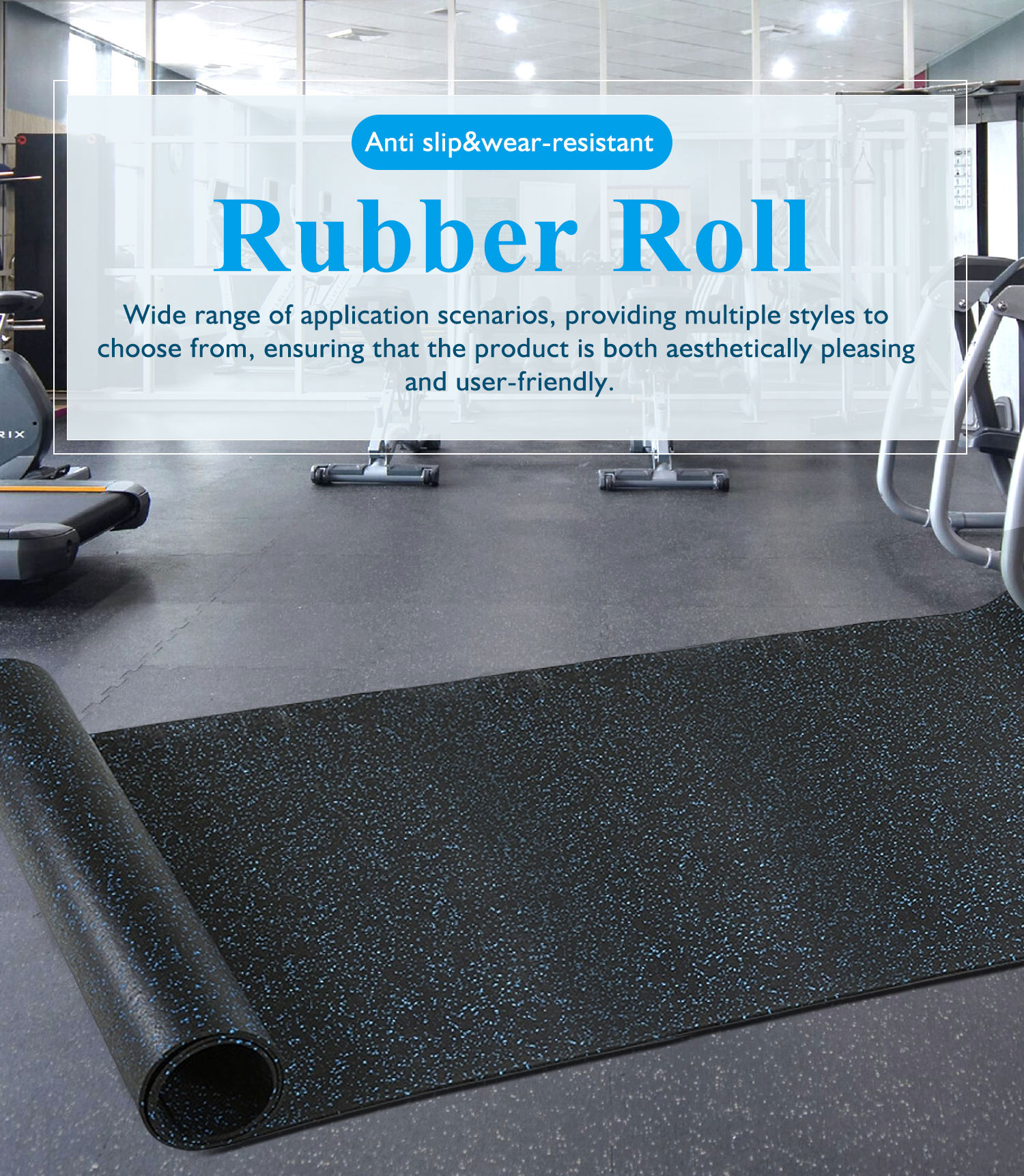 Keyword: rubber roll, rubber flooring rolls, gym flooring rolls, rubber gym floor rolls, gym mat roll