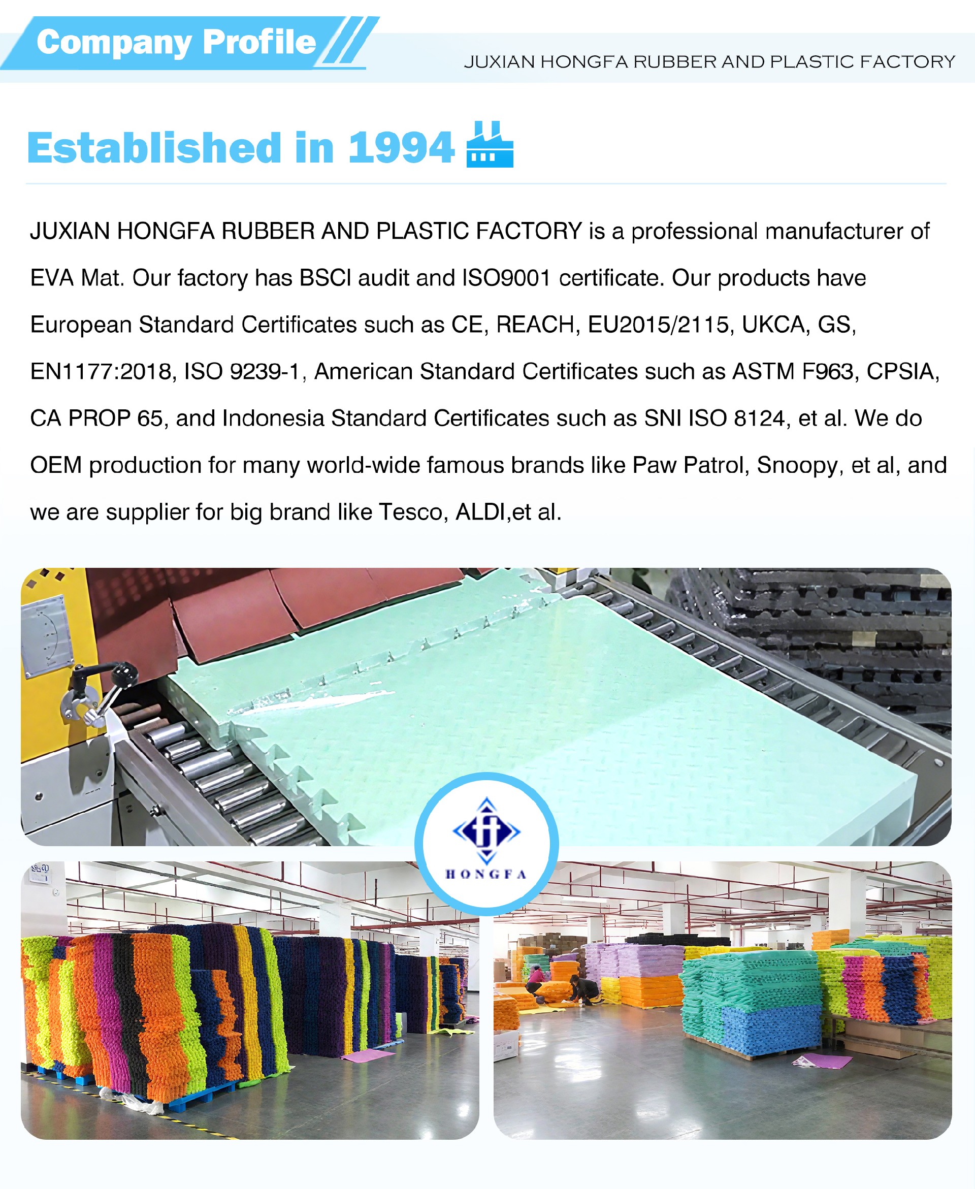 Our factory has BSCI audit and ISO9001 certificate from UKAS.Our products have certificates such as CE,REACH,UKCA,TUV GS,EU 2015/2115,ROHS,Impact Attenuation Test,Fire Proof Certificate,ASTMF963,CPSIA,CAPROP 65,er al.