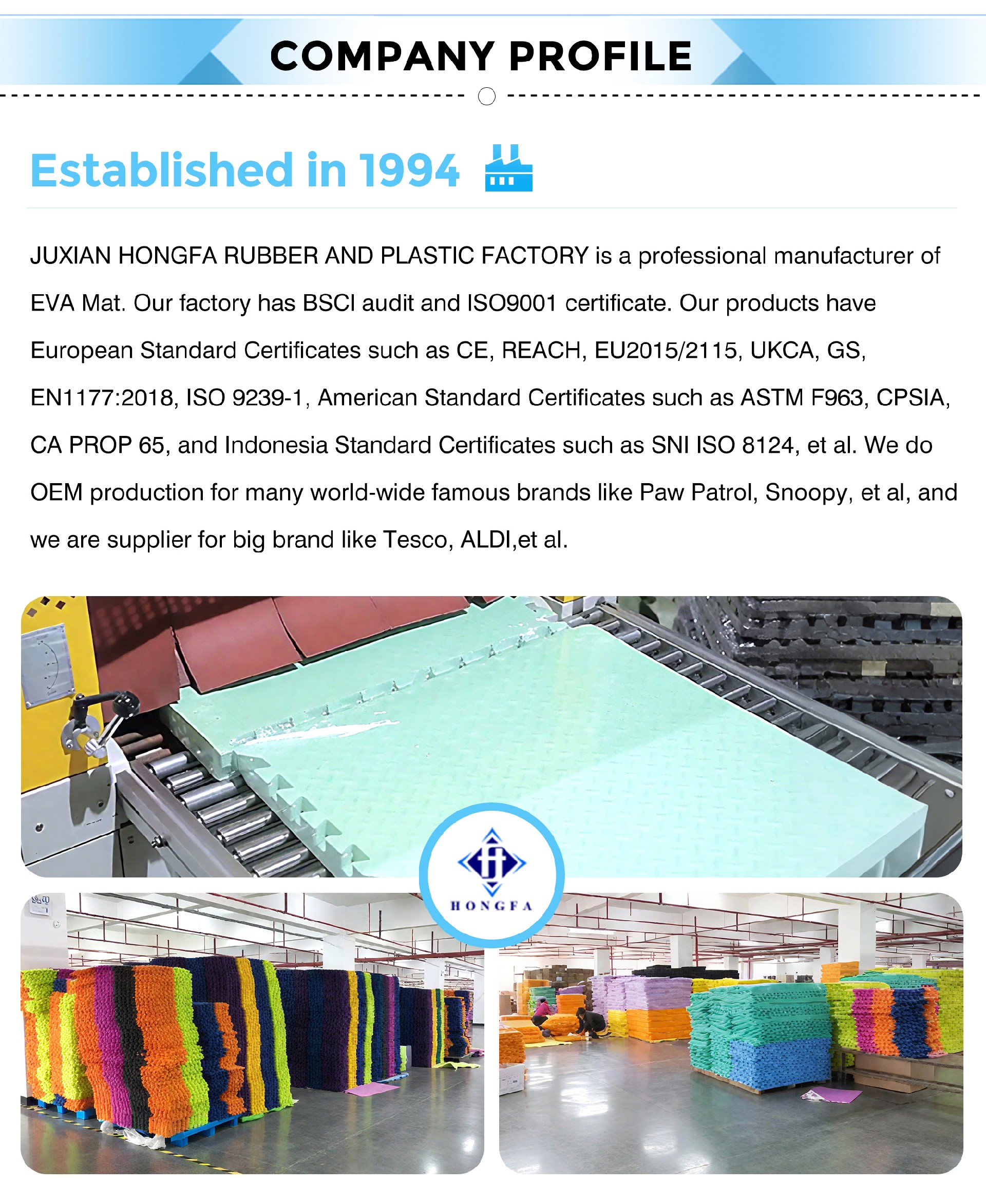 Our factory has BSCI audit and ISO9001 certificate from UKAS.Our products have certificates such as CE,REACH,UKCA,TUV GS,EU 2015/2115,ROHS,Impact Attenuation Test,Fire Proof Certificate,ASTMF963,CPSIA,CAPROP 65,er al.
